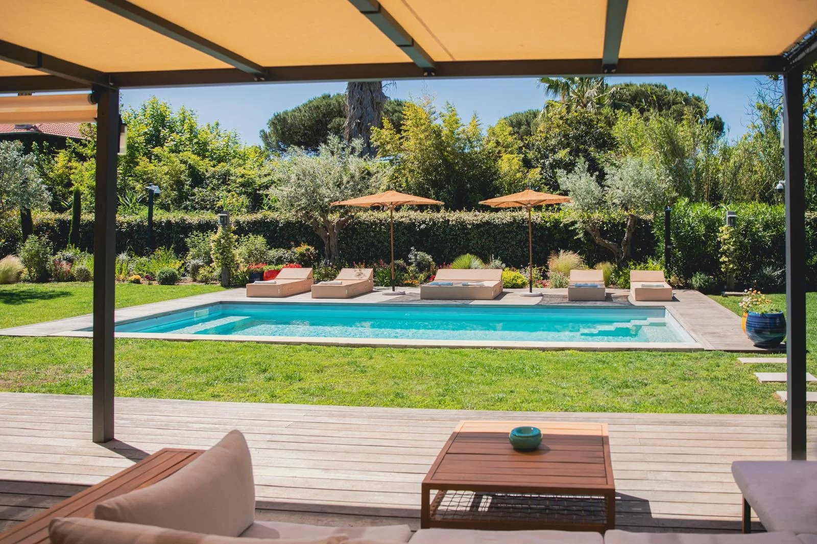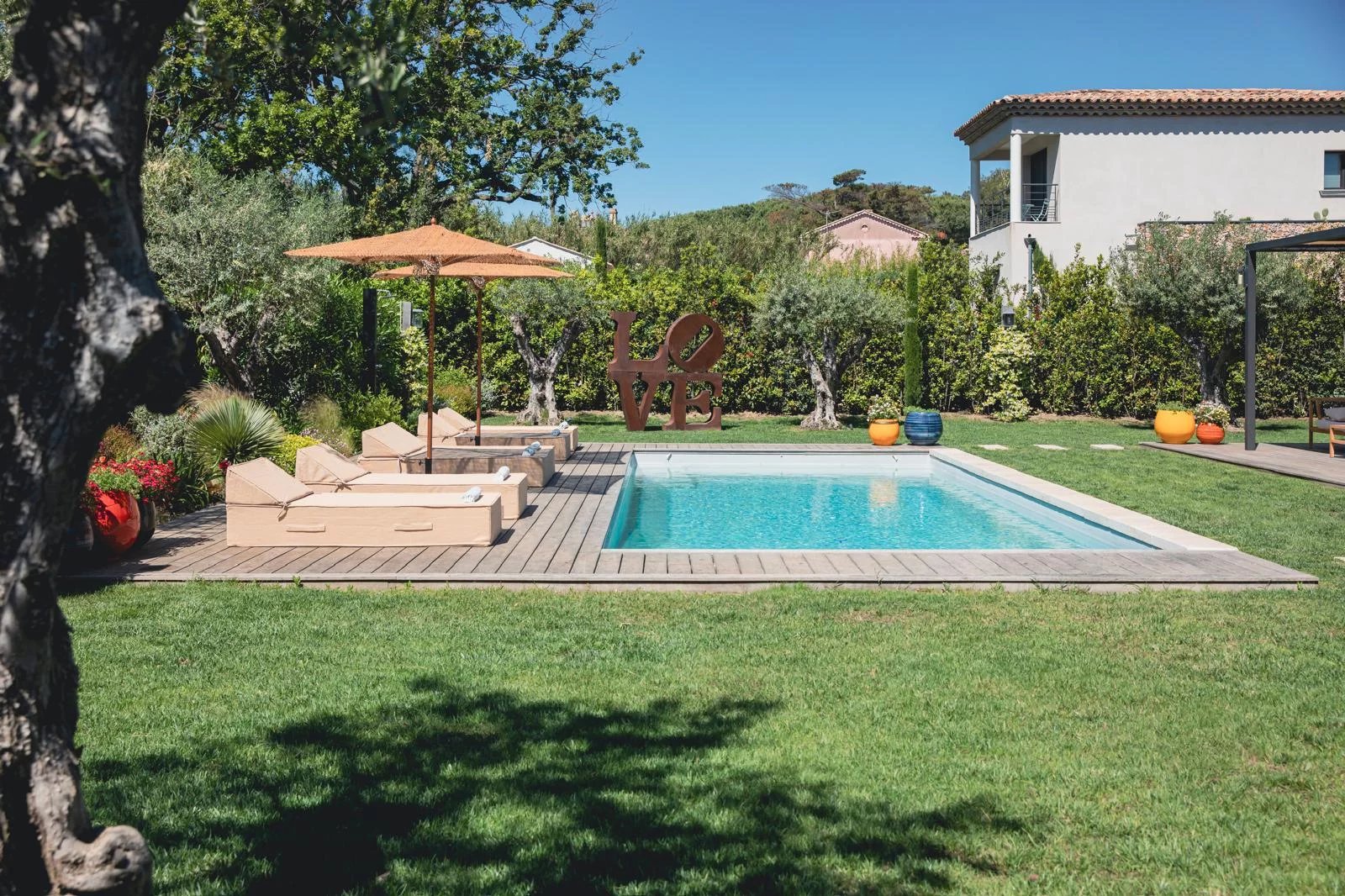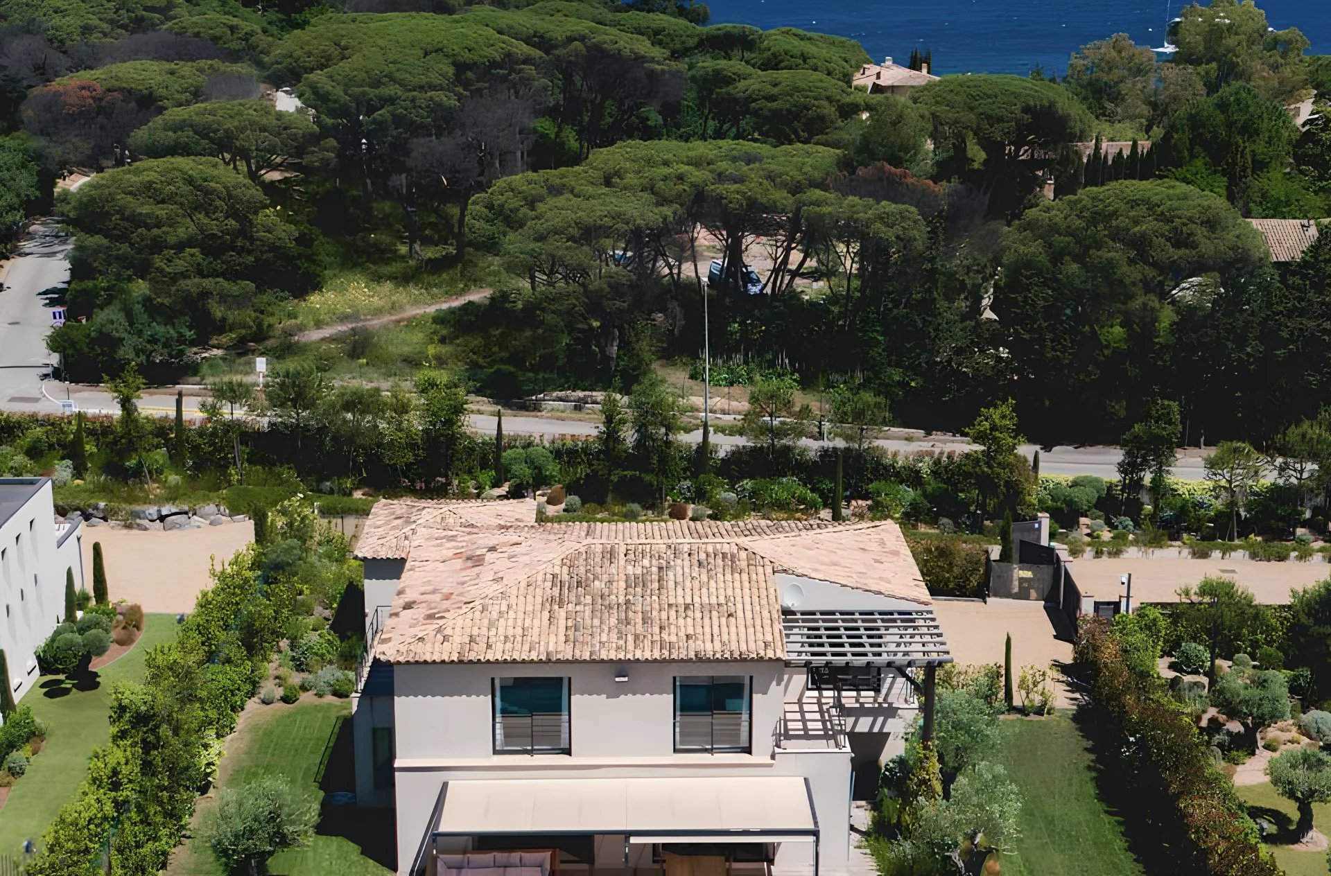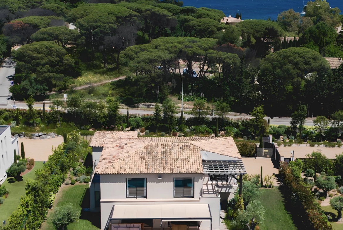 Diese moderne und elegante Villa von 240 m² mit einem Pool und einem 1.330 m² großen angelegten Garten ist ideal gelegen, nur 900 Meter vom Strand, Plage des Canebiers“ und 15 Gehminuten vom Hafen und dem Place des Lices entfernt.