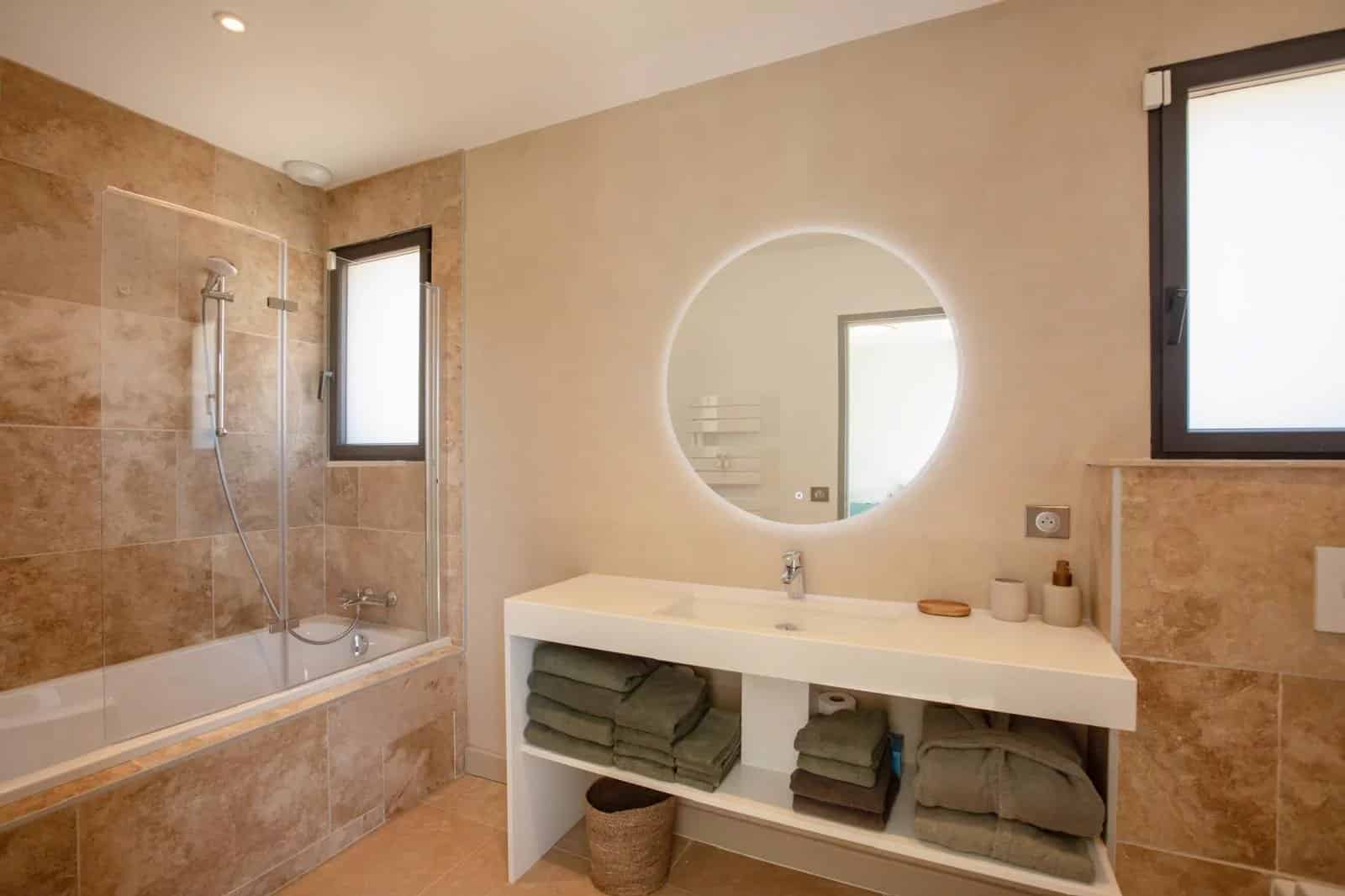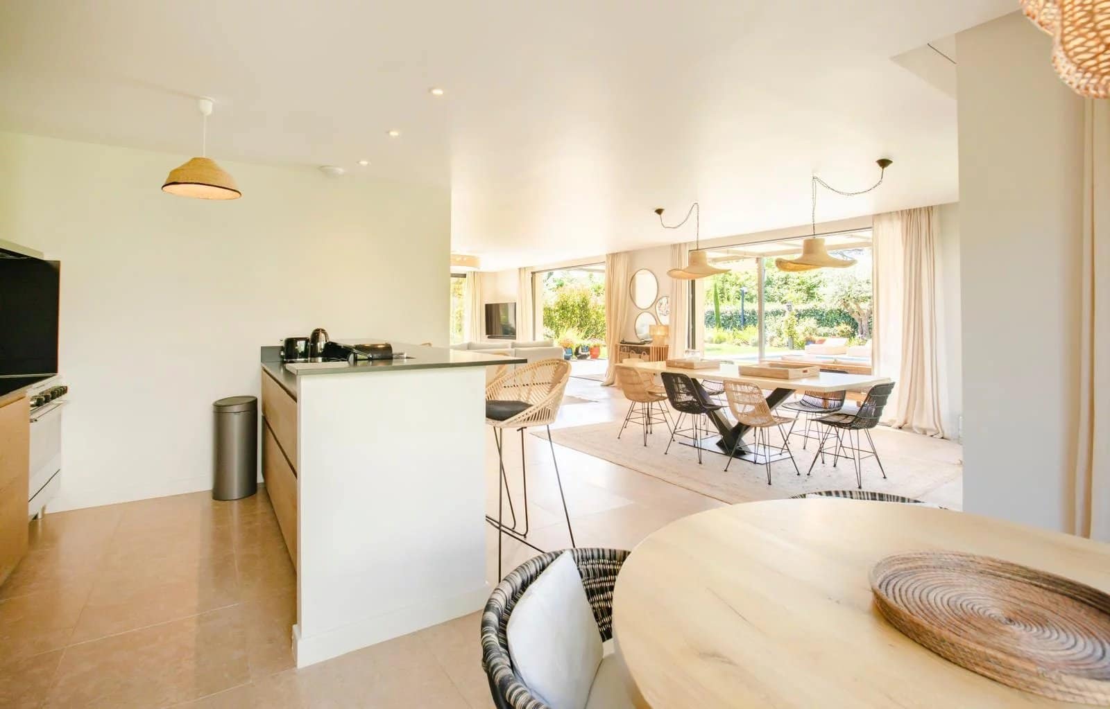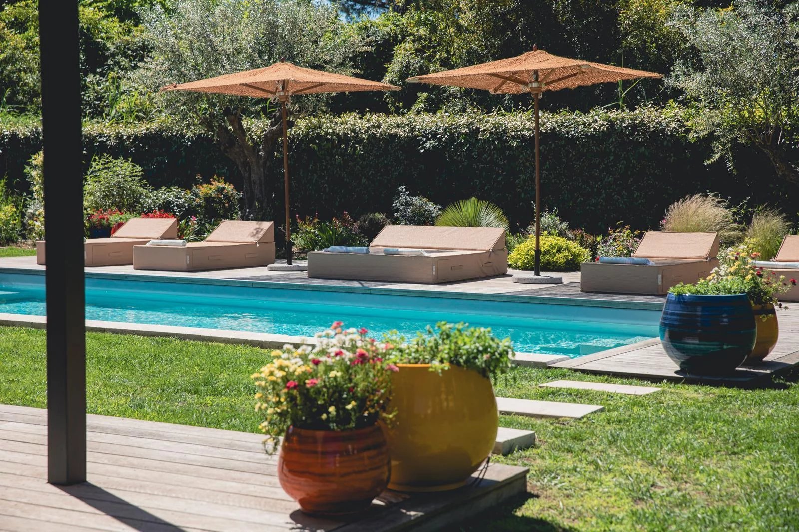 Diese moderne und elegante Villa von 240 m² mit einem Pool und einem 1.330 m² großen angelegten Garten ist ideal gelegen, nur 900 Meter vom Strand, Plage des Canebiers“ und 15 Gehminuten vom Hafen und dem Place des Lices entfernt.