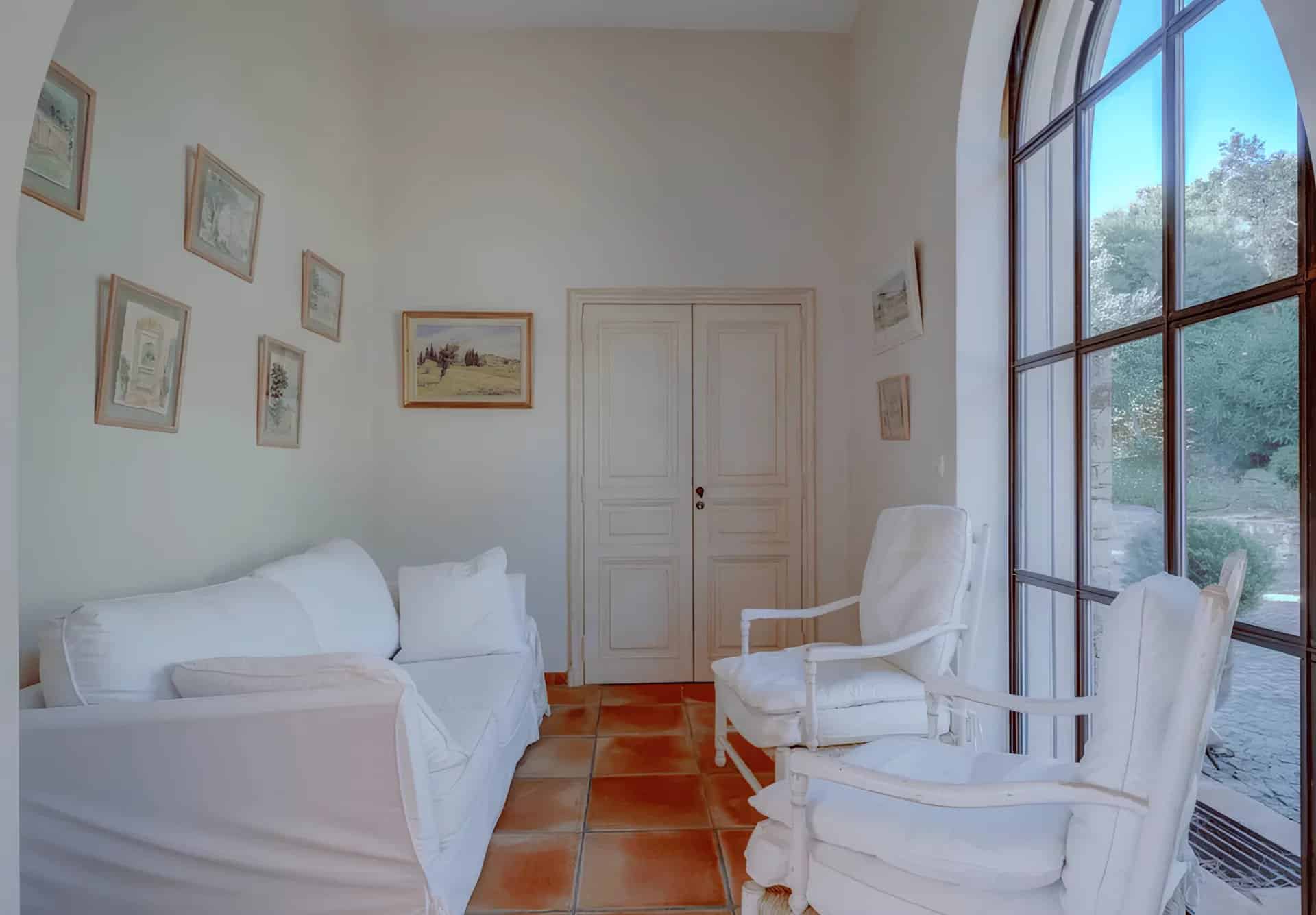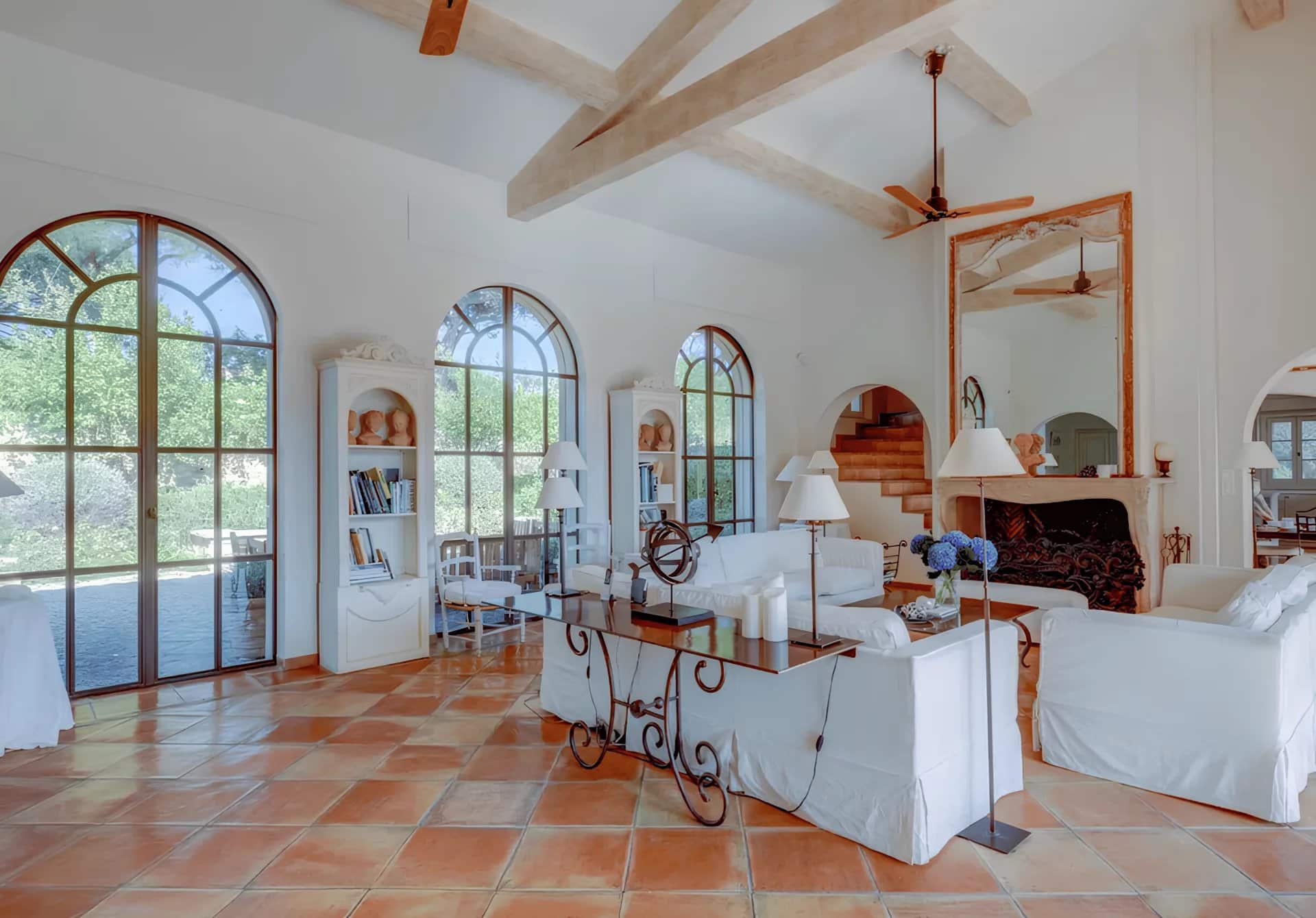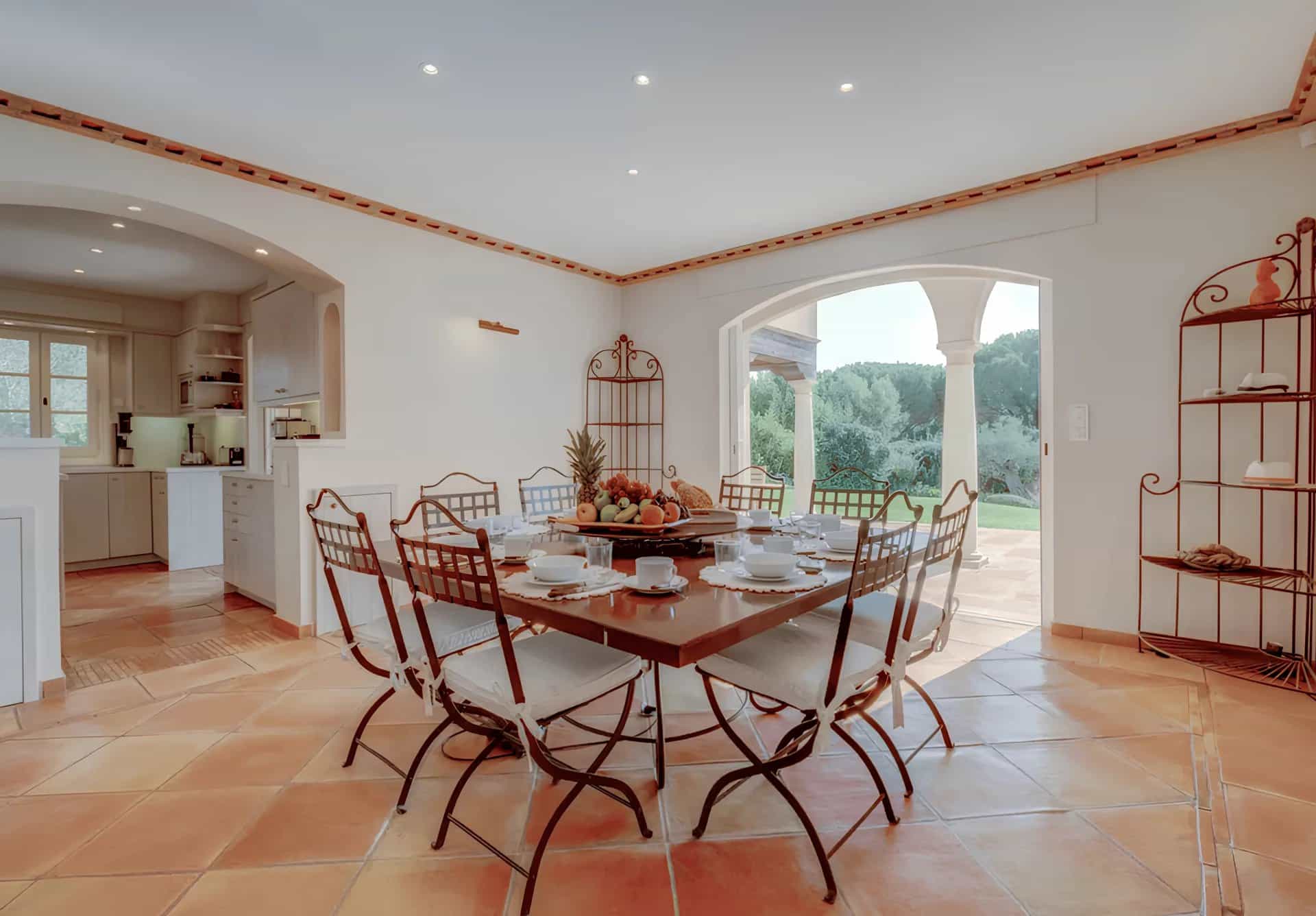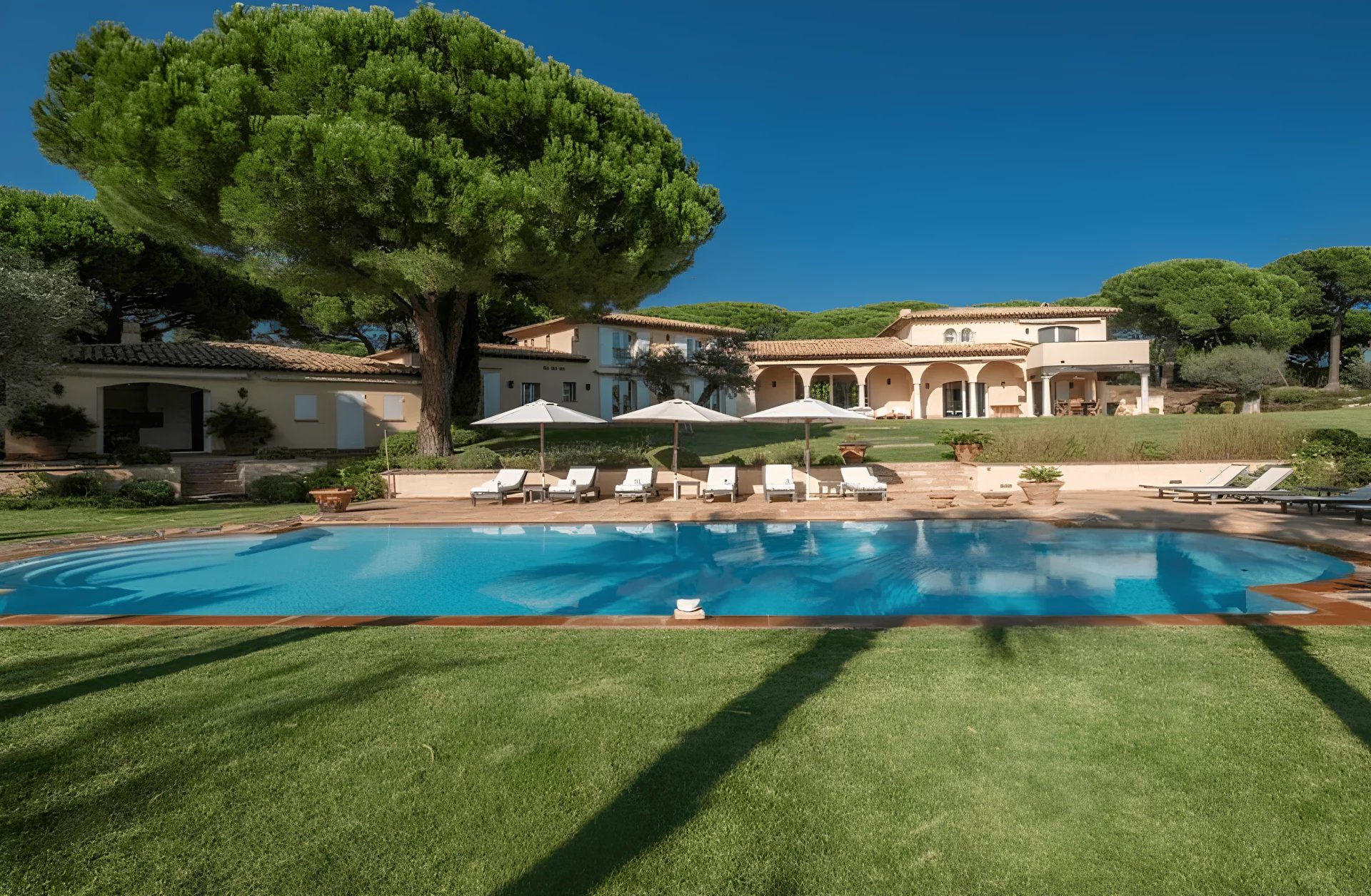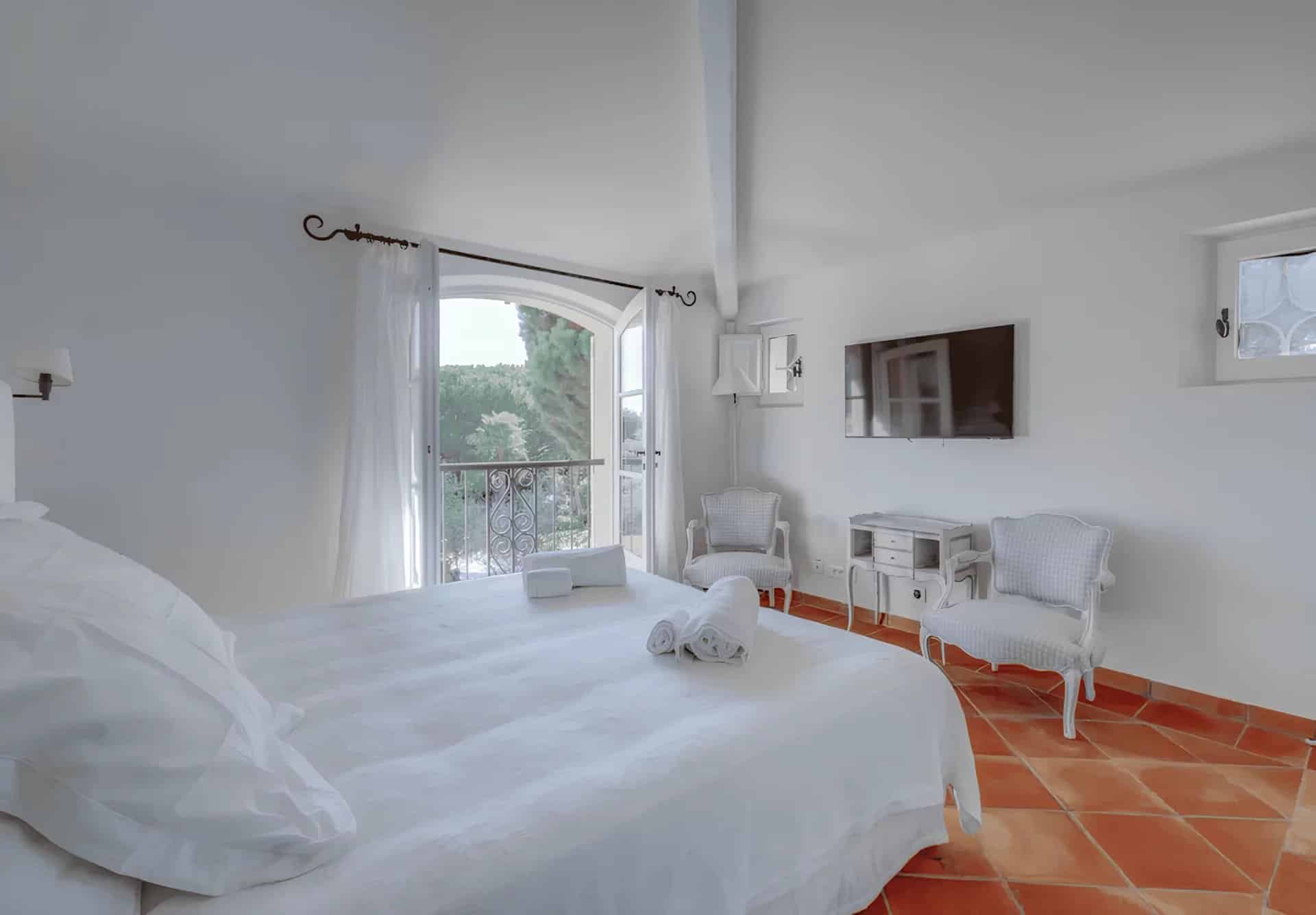 Das Haus und seine Nebengebäude umfassen 7 Schlafzimmer, darunter ein Hauptschlafzimmer mit einem Badezimmer und Duschraum sowie separaten WCs und zwei abgeschiedenen Terrassen mit leichtem Meerblick. Sechs weitere Schlafzimmer verfügen über zwei Badezimmer und vier Duschbäder, ein sehr helles Wohnzimmer von 65 m² mit Kathedraldecke, nord und südseitigen Durchgangsfenstern, die auf die Terrassen führen, sowie einem antiken Kamin. Ein Esszimmer, ein Fernsehzimmer mit WLAN und Innen und Außenbeschallung, eine voll ausgestattete amerikanische Küche, zwei Hauswirtschaftsräume, ein Sommerwohnzimmer und große Terrassen nach Norden und Süden ergänzen das Anwesen.