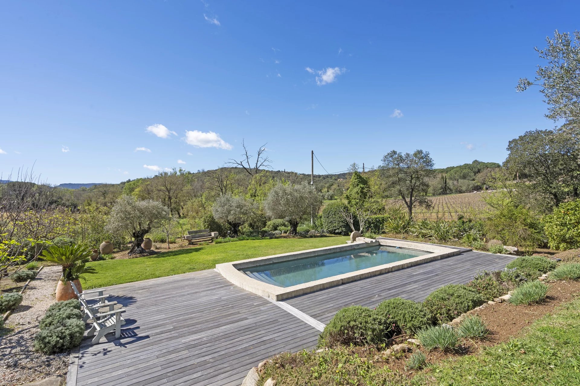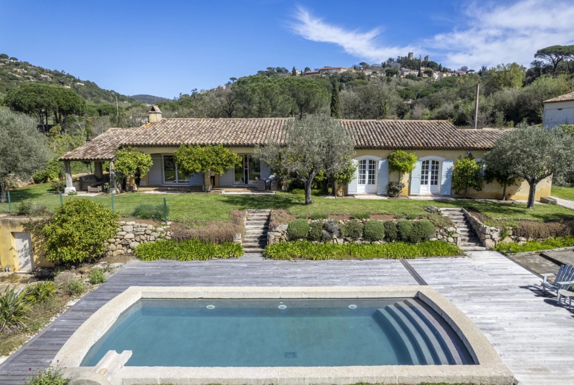 Located in a privileged environment in Grimaud, this charming Provençal-style villa offers open views over the surrounding hills, forest, and vineyards. Set in the heart of a peaceful and sought-after natural setting, it stands out for its warm atmosphere, generous volumes, and the quality of its features, inviting a truly Mediterranean lifestyle.