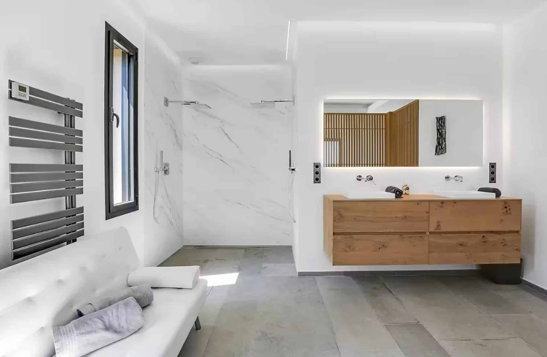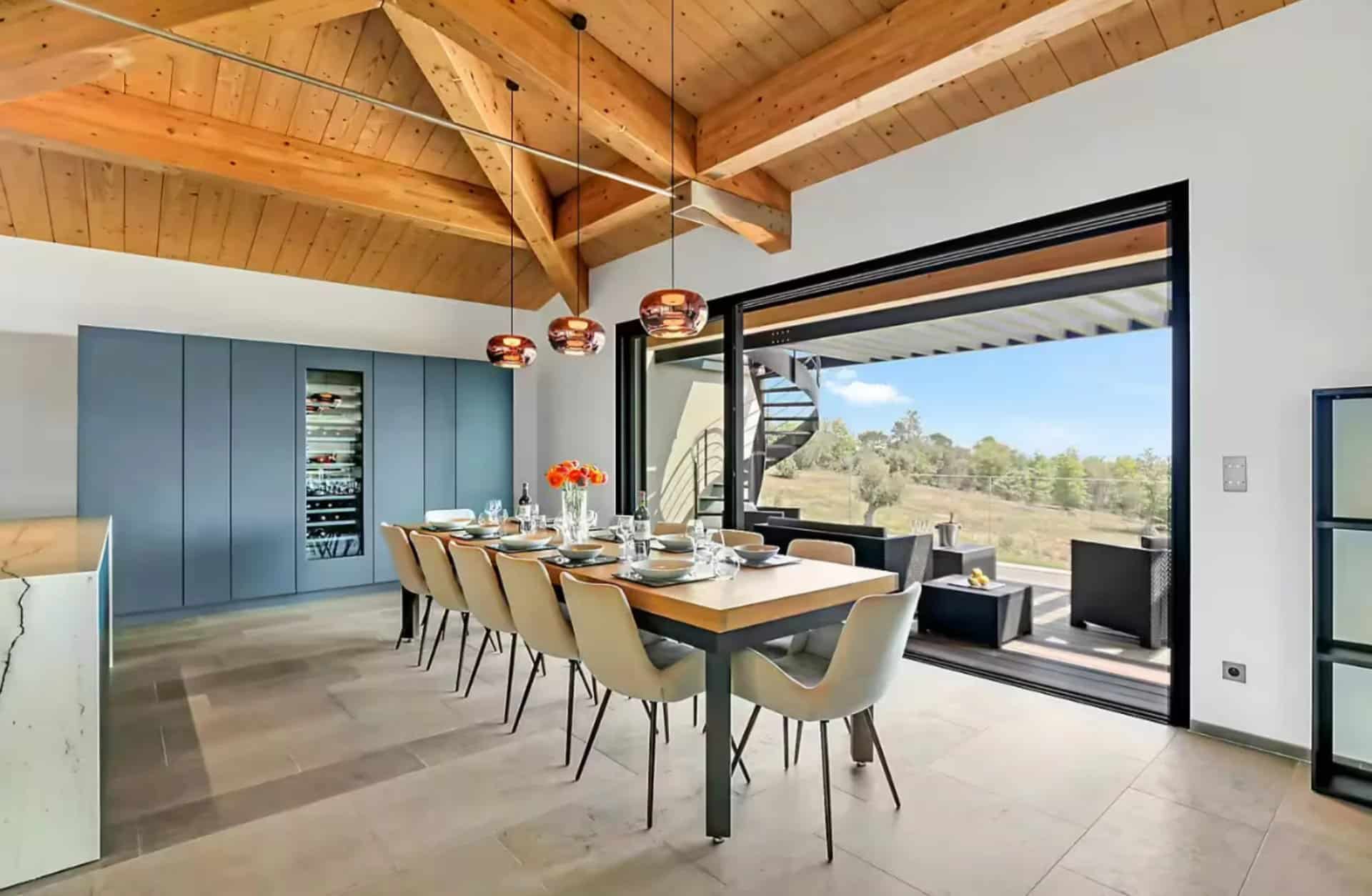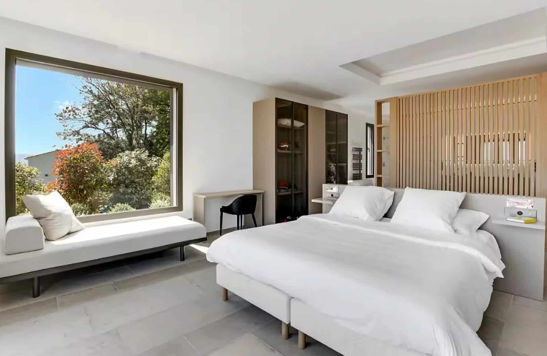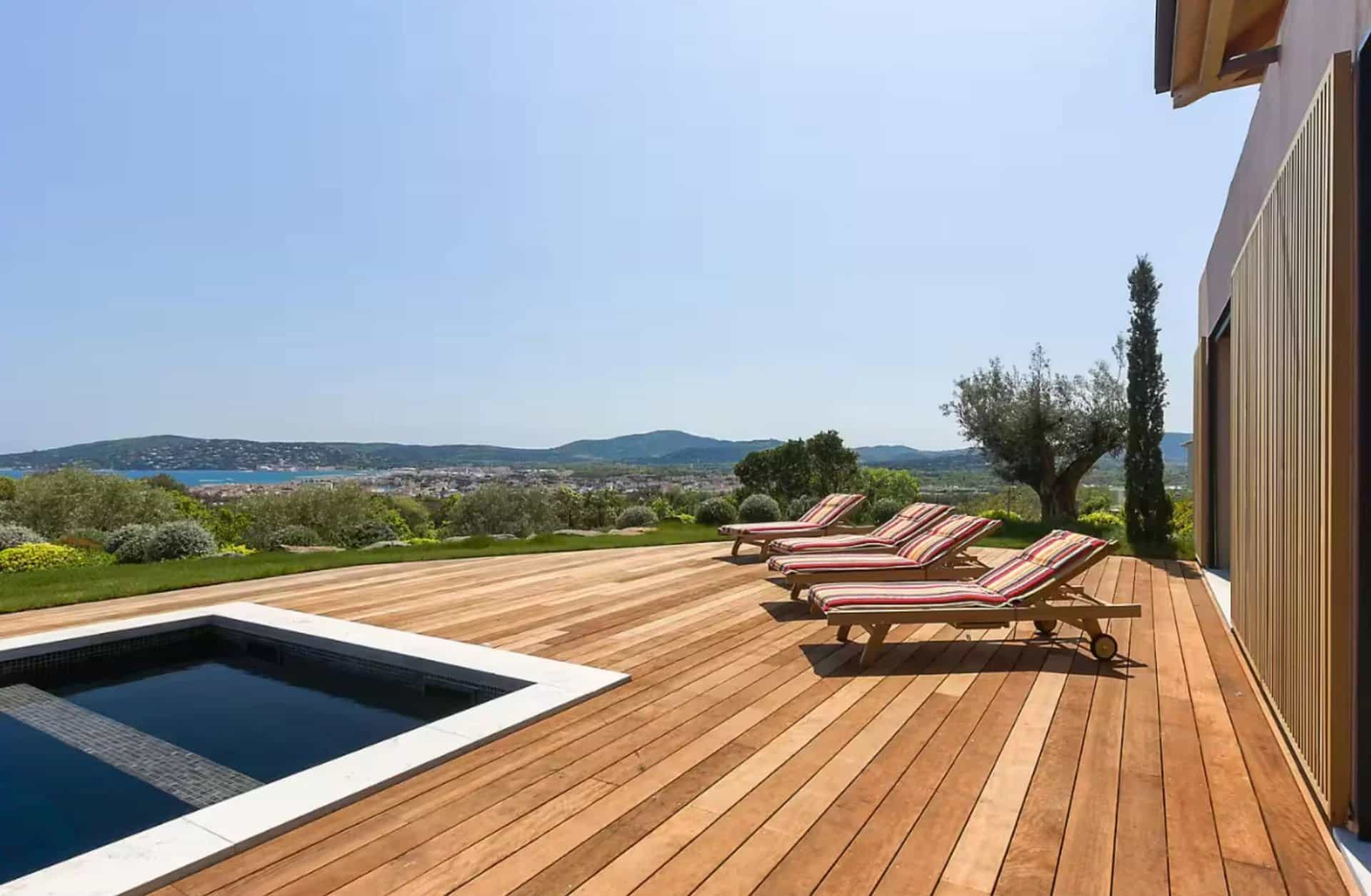 This recently built 500 m² villa features 5 bedrooms, a Technogym-equipped fitness room, a Gaggenau kitchen, and a 15 m heated pool surrounded by 300 m² of wooden terraces. Fully equipped with advanced home automation (SONOS, fiber optic, video surveillance), it also includes a garage with fast charging, underfloor heating/cooling, a 120 m³ water tank, and a Mediterranean garden with automatic irrigation. High-end comfort in an exceptional setting.