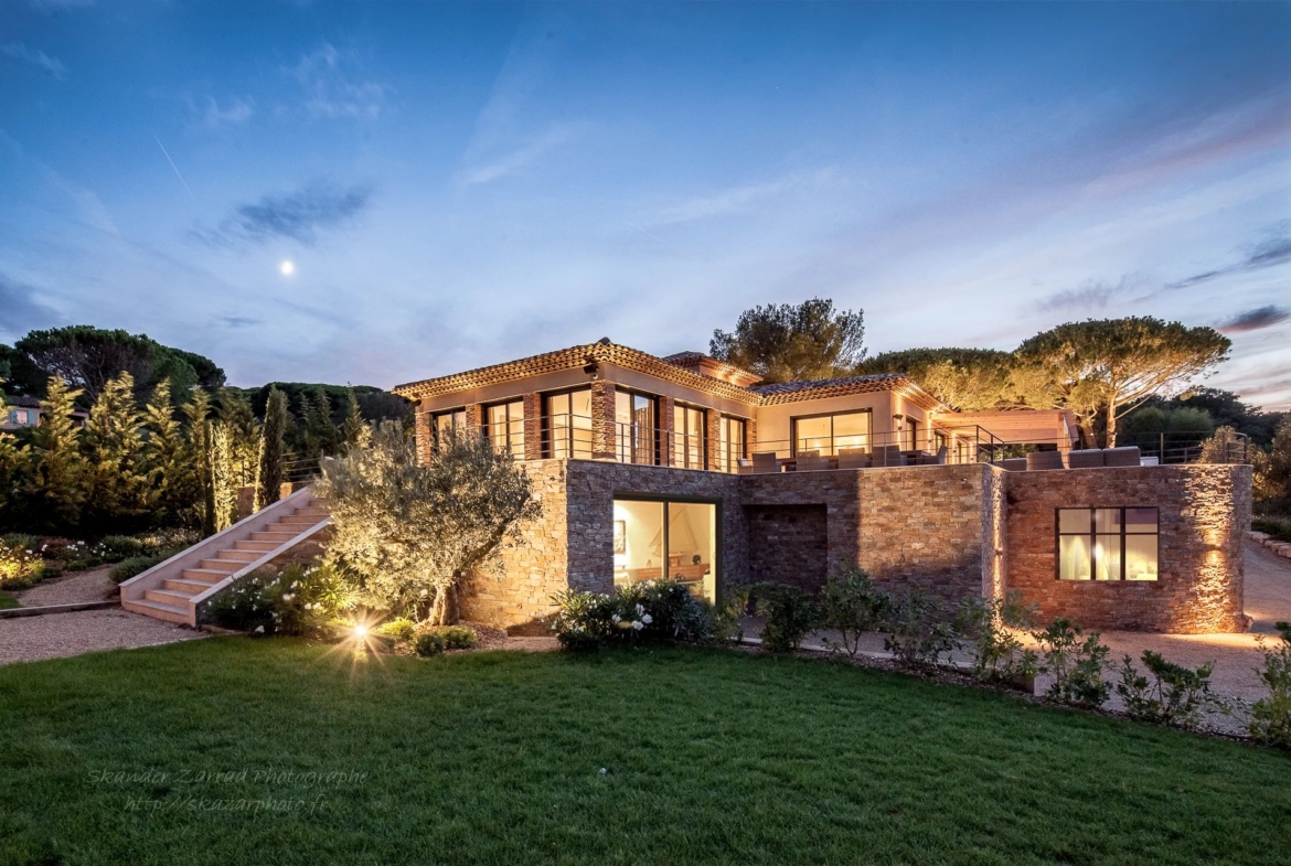 The Villa of 470m2 offers an architecture inspired by the natural spirit of Sant-Tropez. Designed by a renowned architect, decorated with care and meticulously fitted out to measure, it can accommodate 14 guests in optimal comfort.