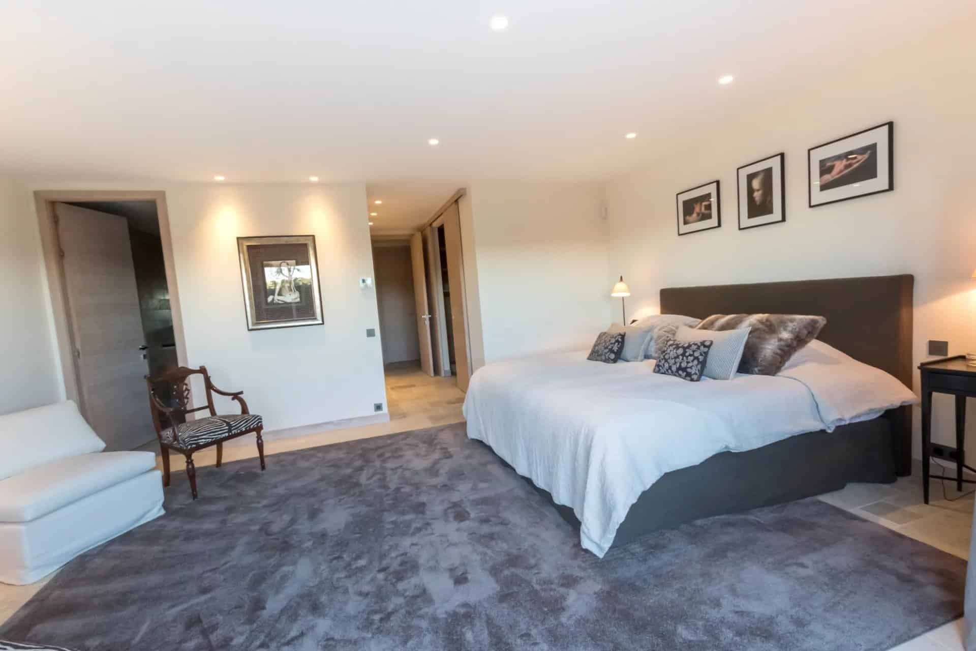 On the lower level, there are five large suites with bathrooms, dressing rooms and individual terraces, as well as a splendid wine cellar and a space dedicated to fitness and well-being. A private setting designed with elegance, comfort and discretion.